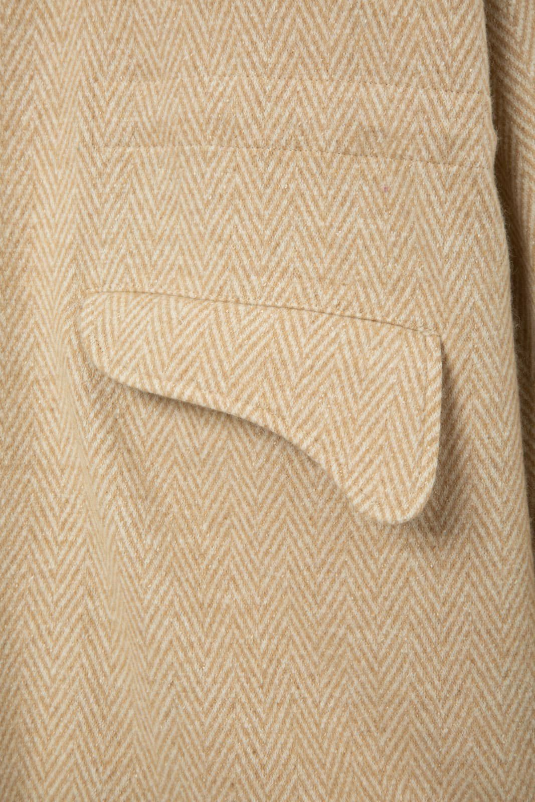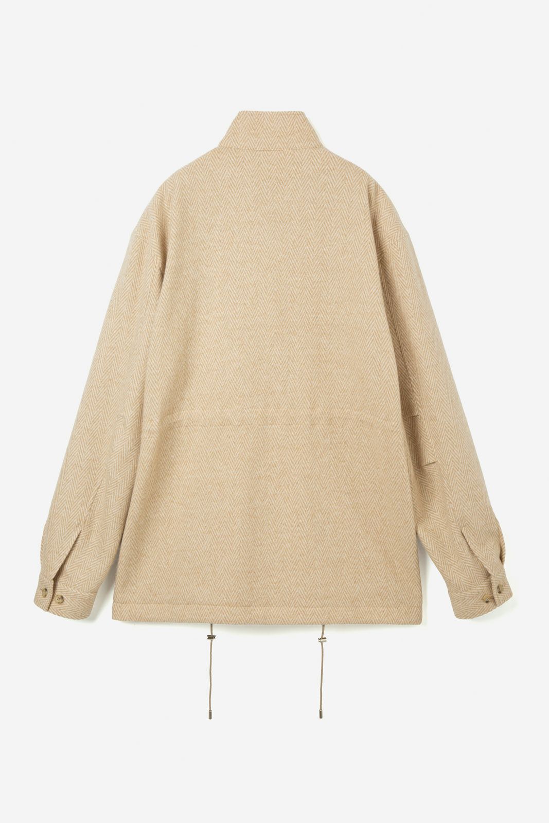 WOOL CASHMERE BEIGE HERRINGBONE MILITARY JACKET