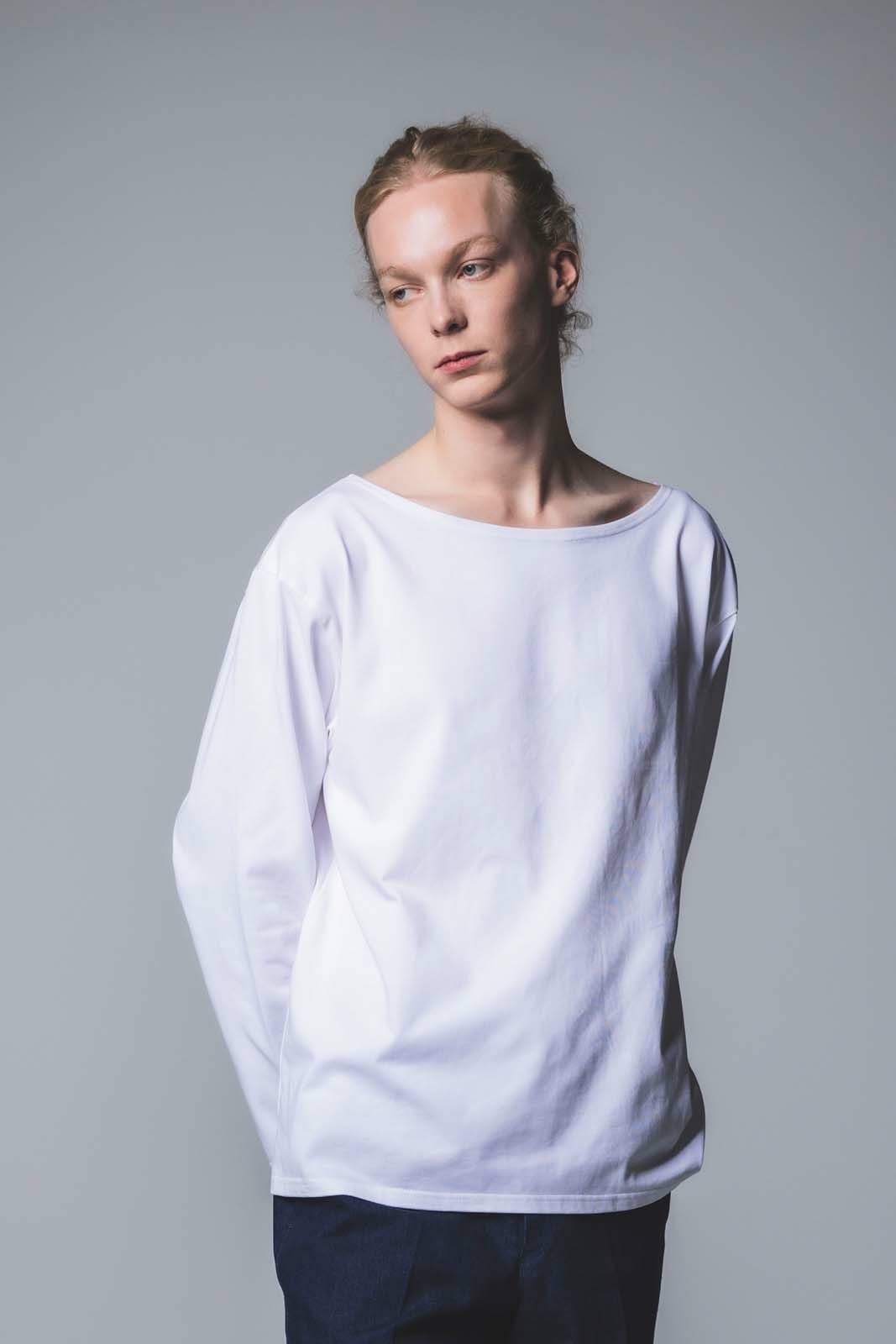 ETRAVE - WHITE LONG SLEEVE BOAT NECK CUT AND SAW