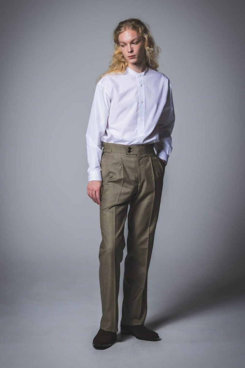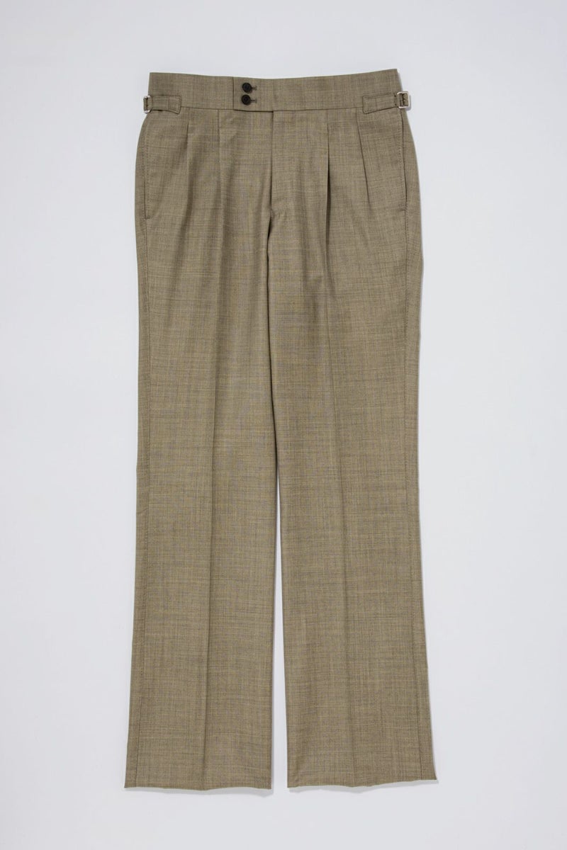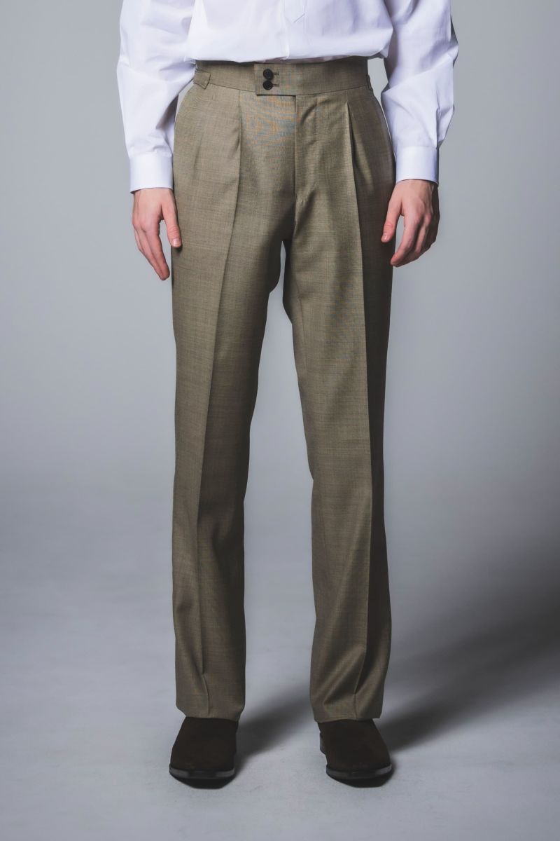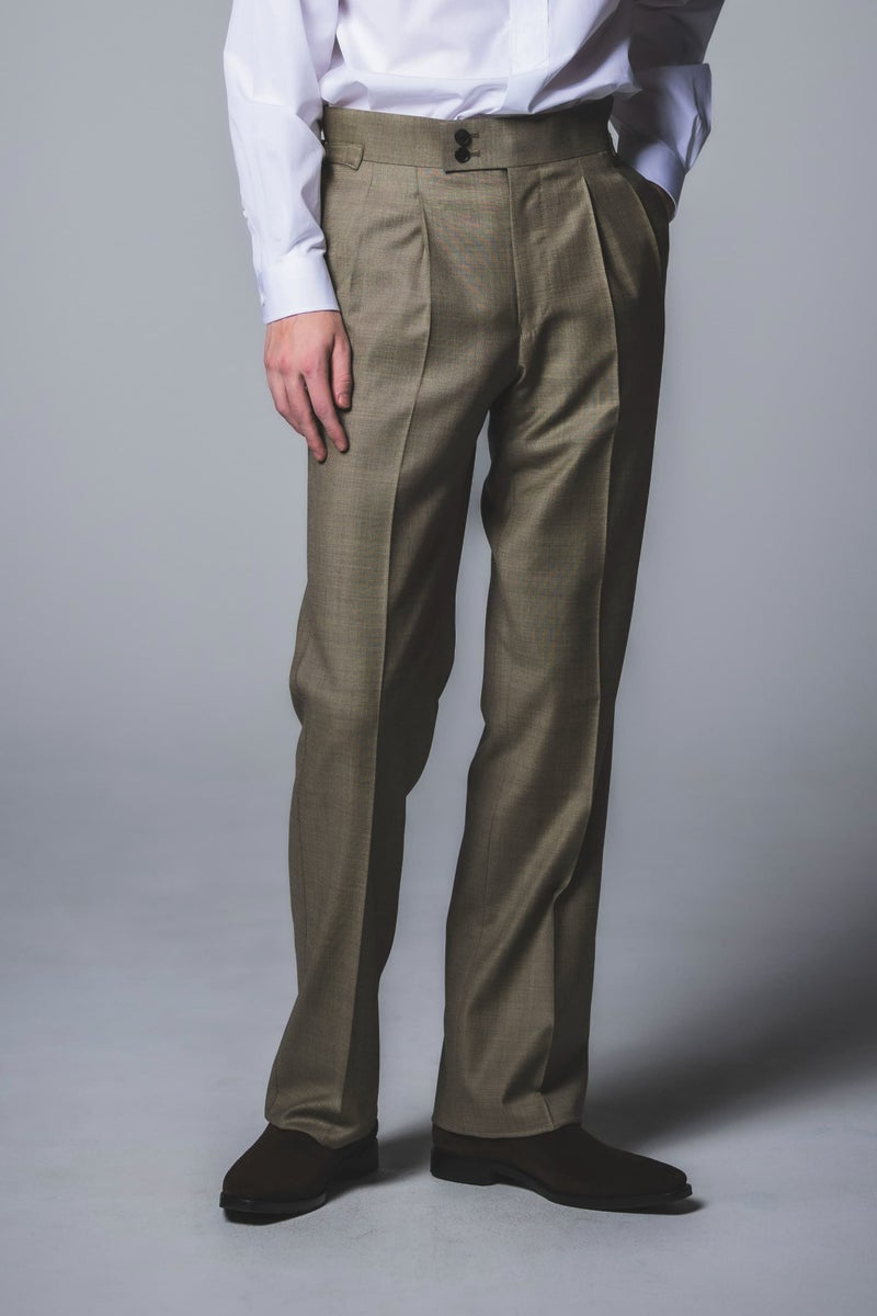 GALBE - WOOL KHAKI DOUBLE PLEAT TROUSERS