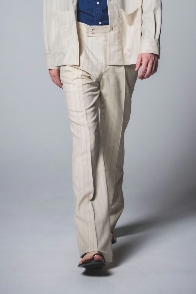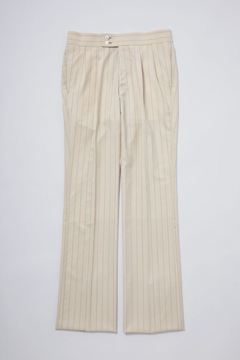 GALBE - WOOL BEIGE STRIPE DOUBLE PLEAT TROUSERS