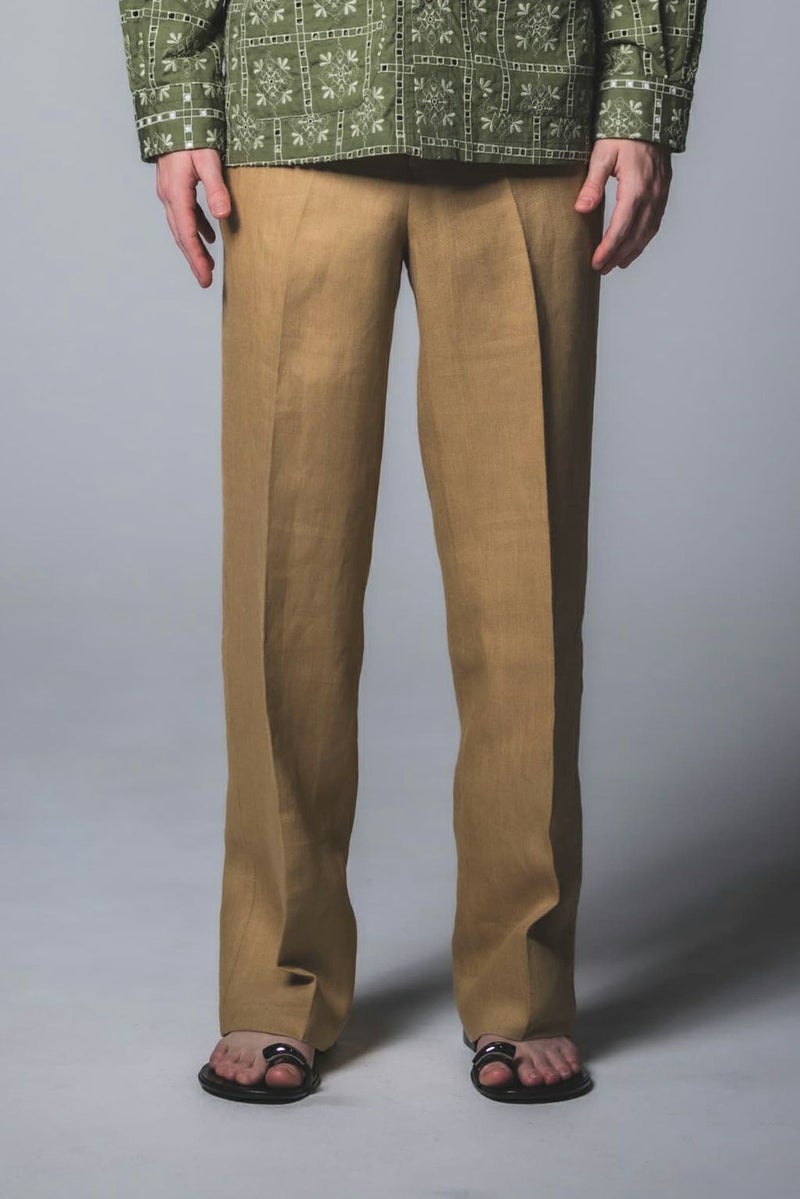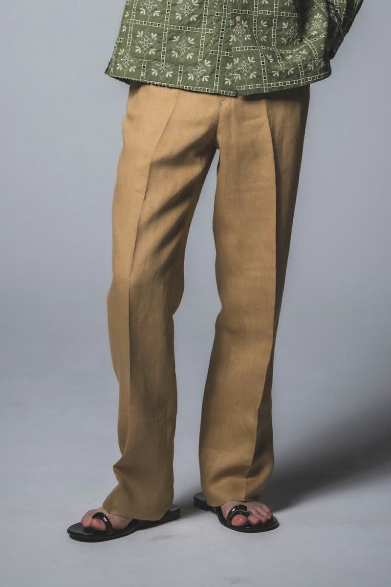 ALLURE - LINEN BEIGE PLAIN FRONT TROUSERS