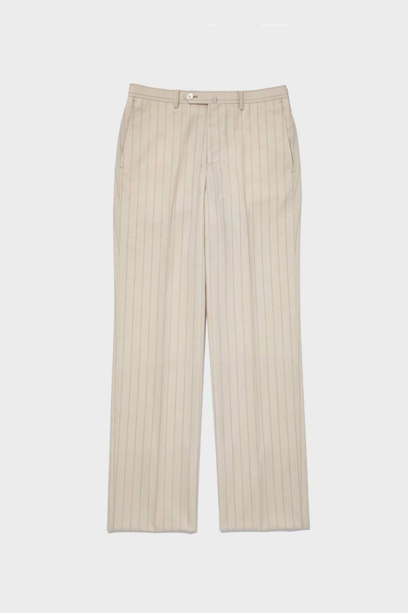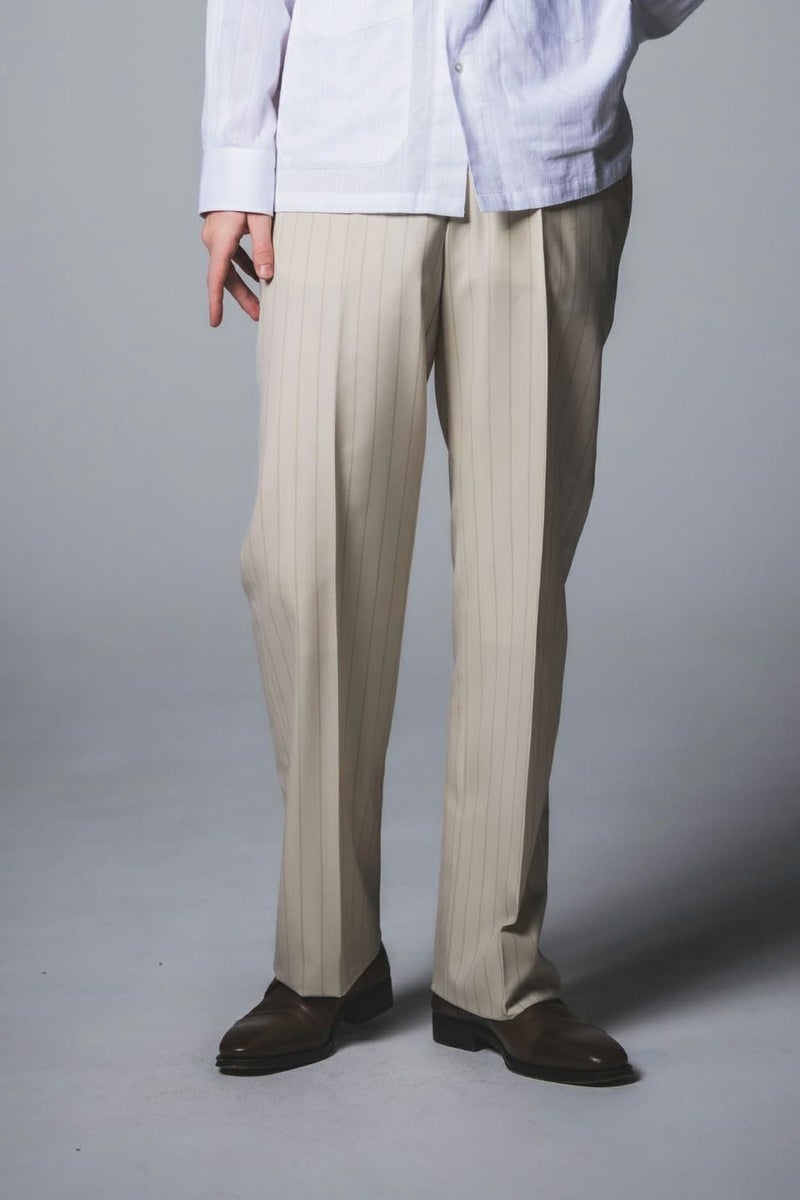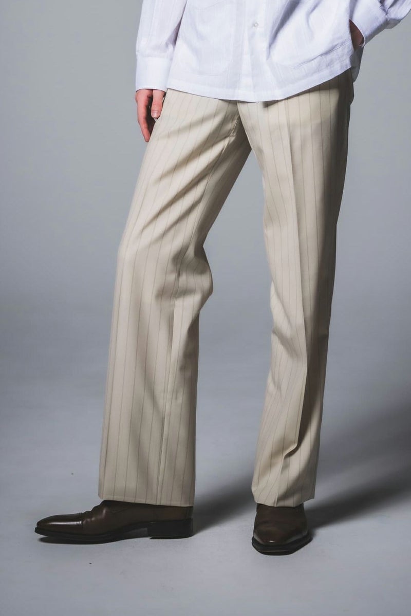 ALLURE - WOOL BEIGE STRIPE PLAIN FRONT TROUSERS