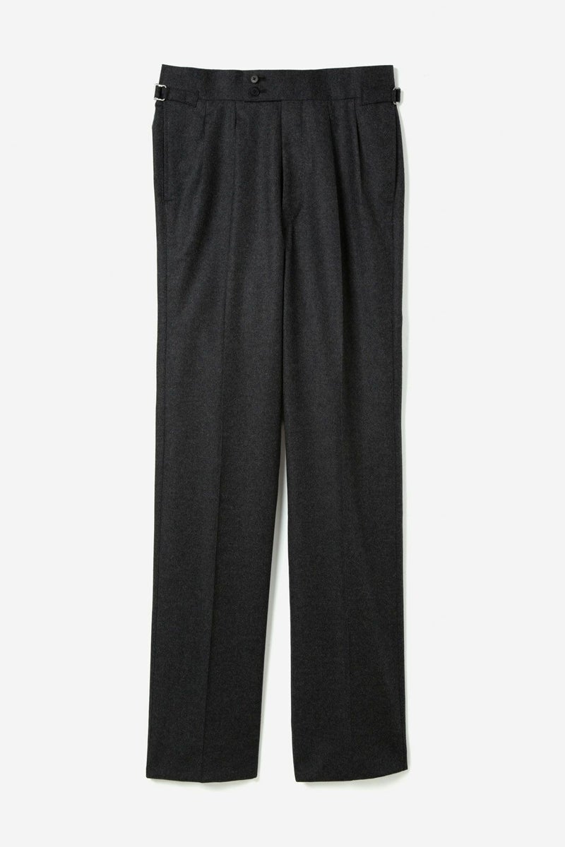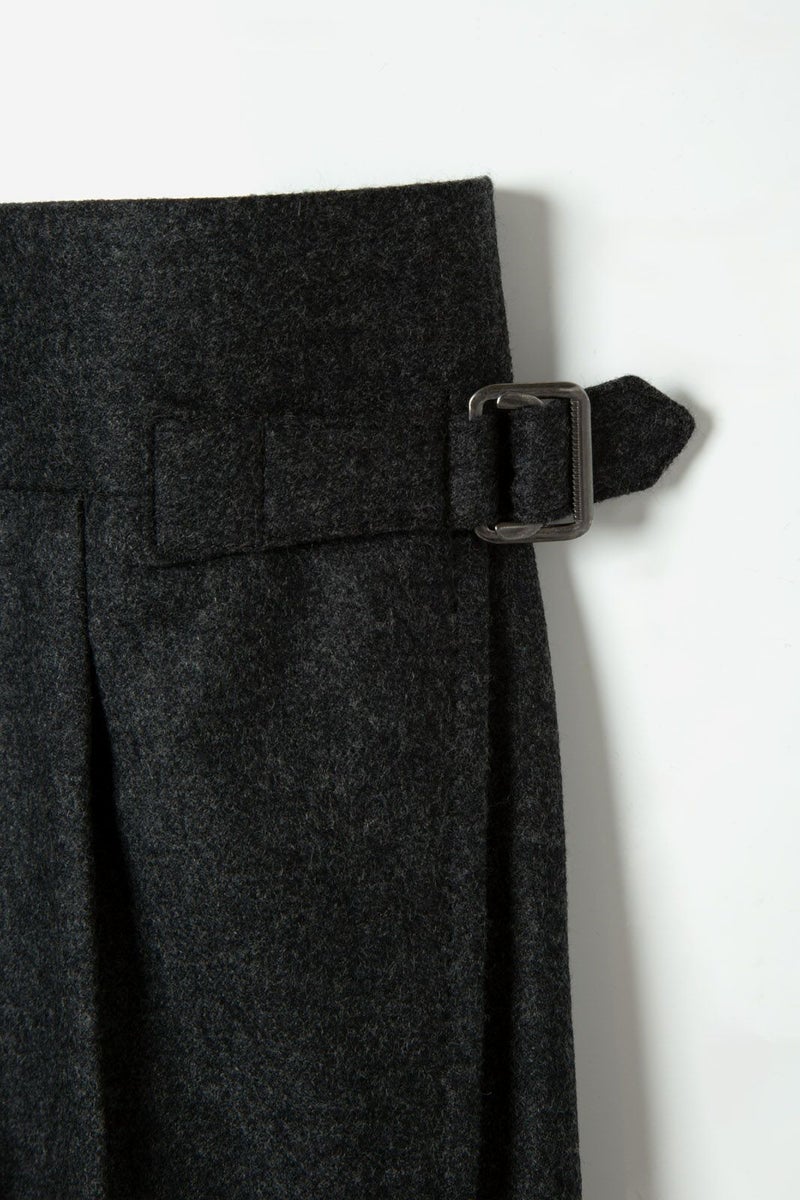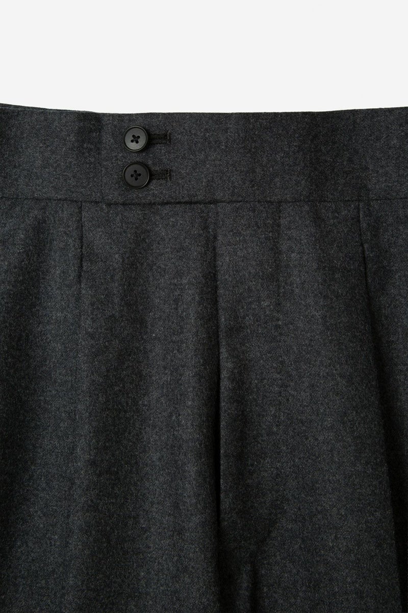 GALBE - WOOL FLANNEL GRAY DOUBLE PLEAT TROUSERS