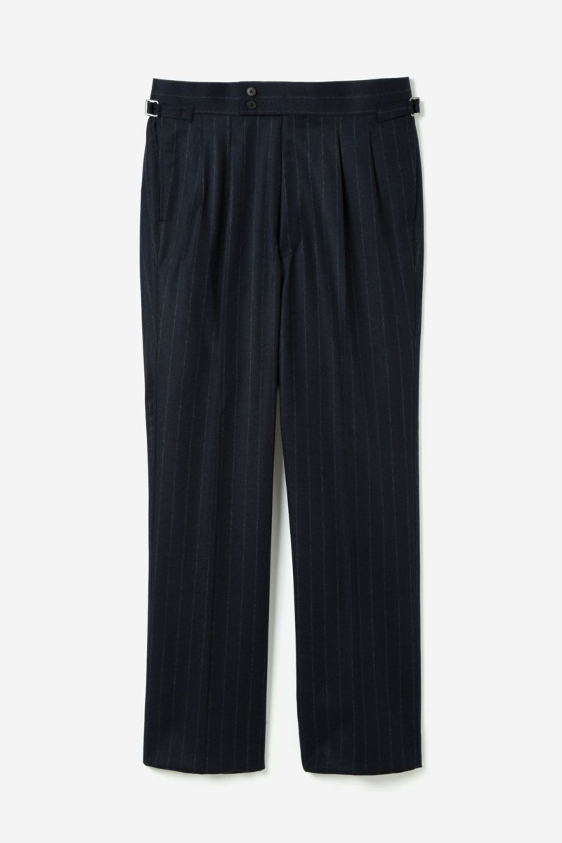 GALBE - WOOL FLANNEL NAVY STRIPE DOUBLE PLEAT TROUSERS