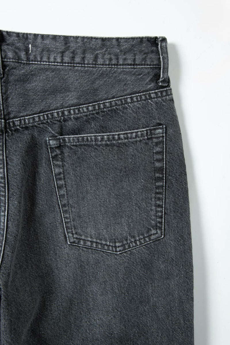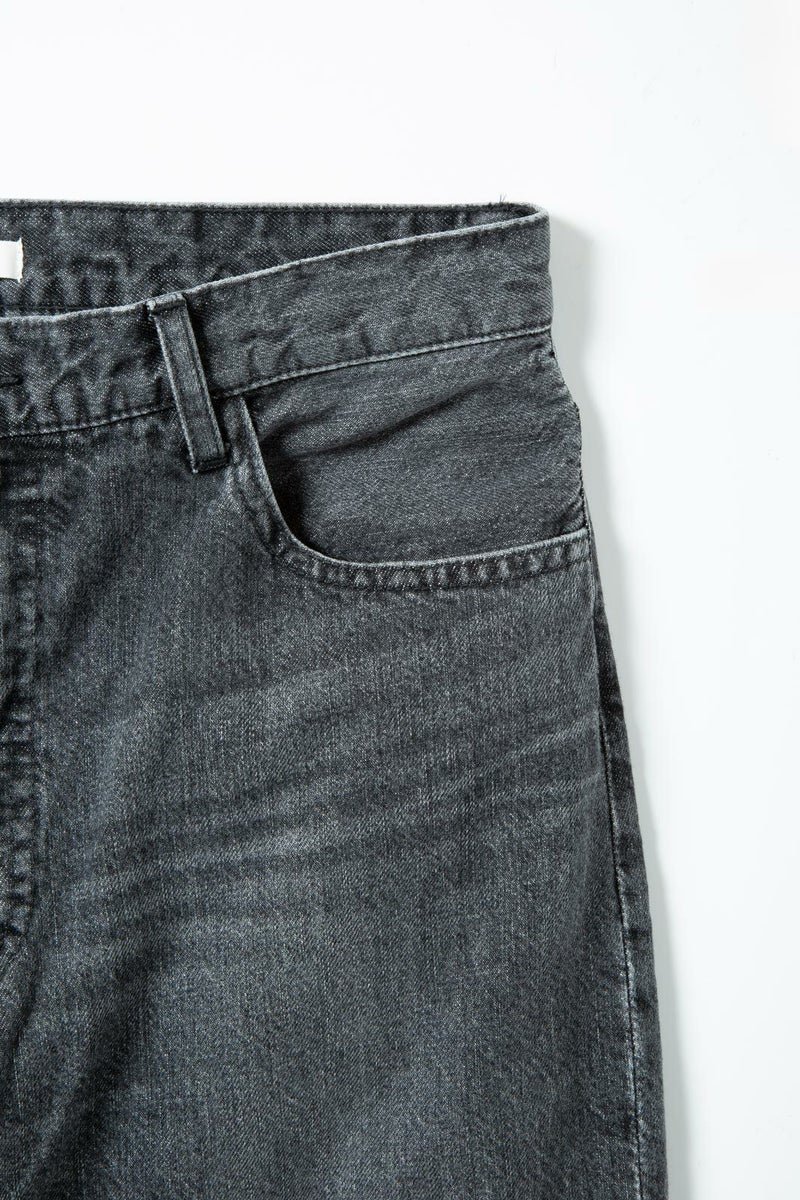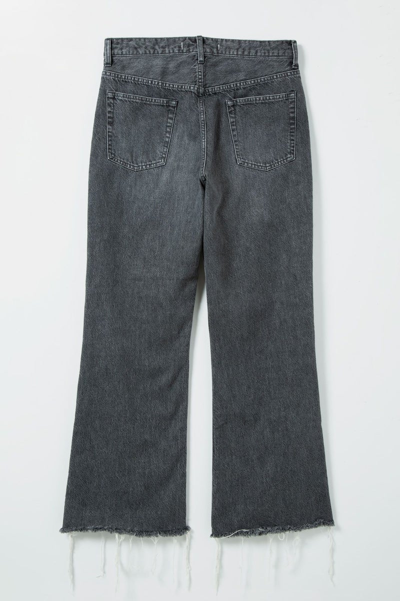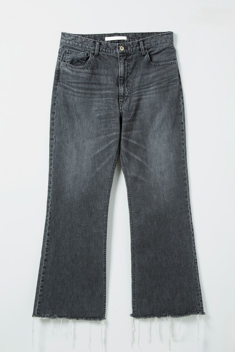 しっかりとした素材感と程よいハリのあるファブリックは、穿くほどに体の動きに馴染み、インディゴとは違うモダンな存在感を放ちます。裾に向かって緩やかに広がるフレアラインが、動きに柔らかさを添え、コーディネート全体にリズムを加えます。