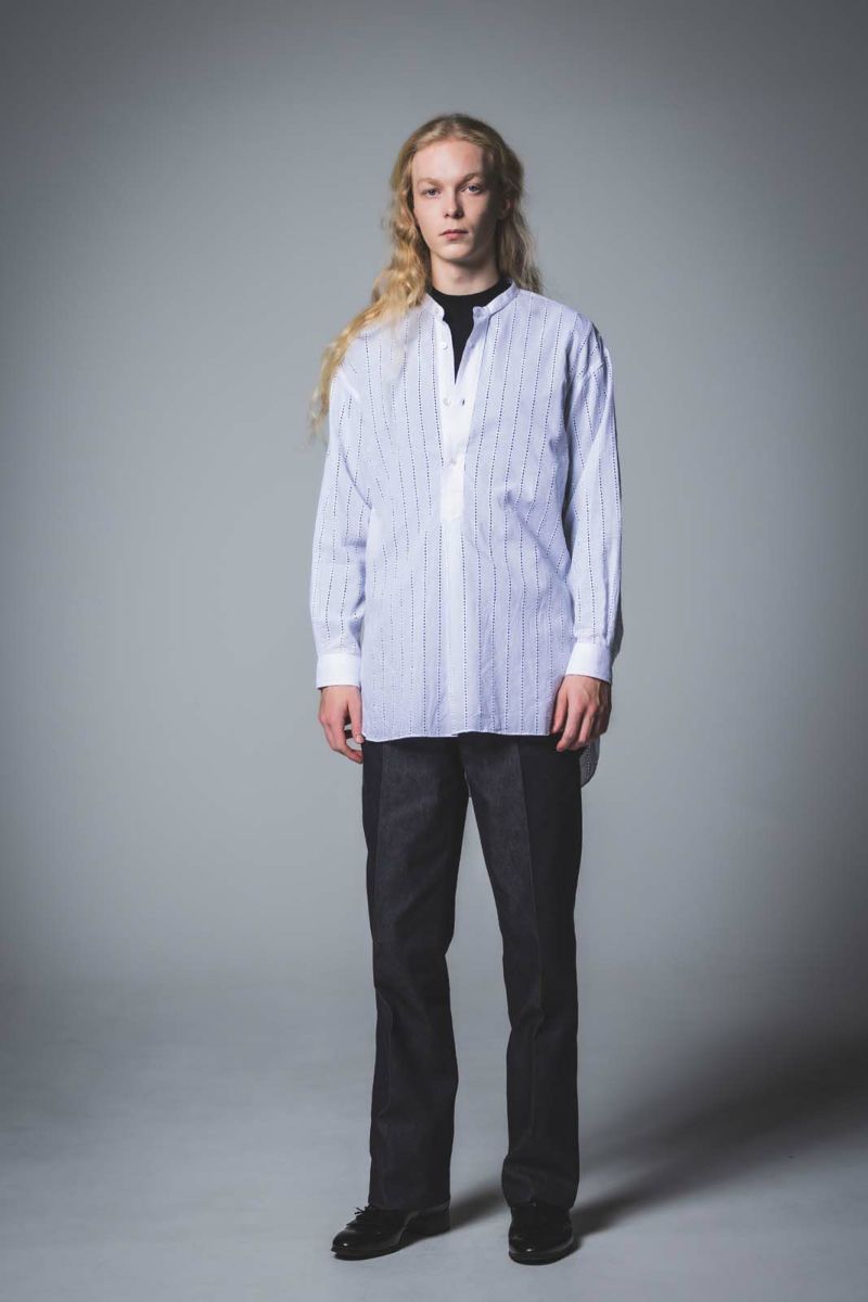 PERE - EYELETS EMBROIDERY COTTON WHITE COLLARLESS SHIRTS