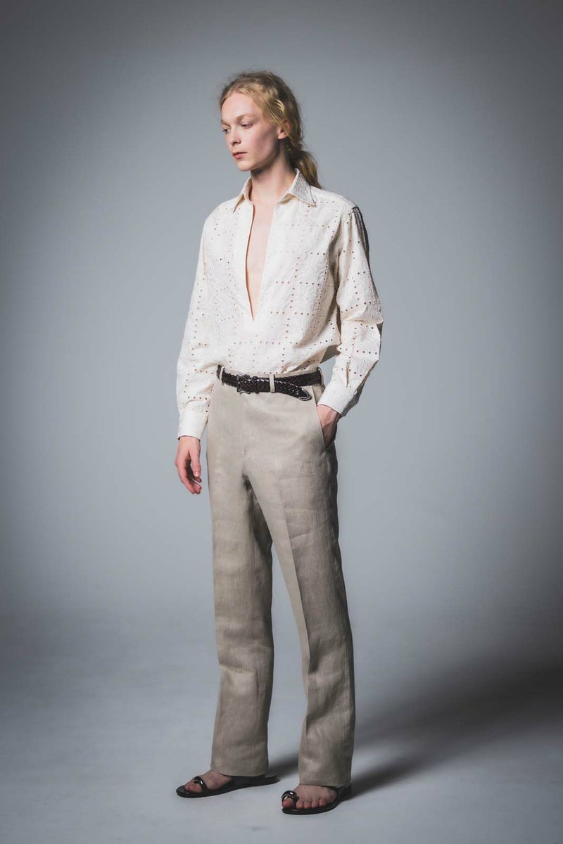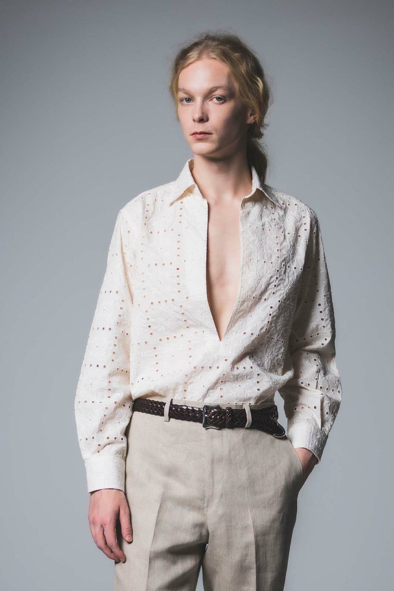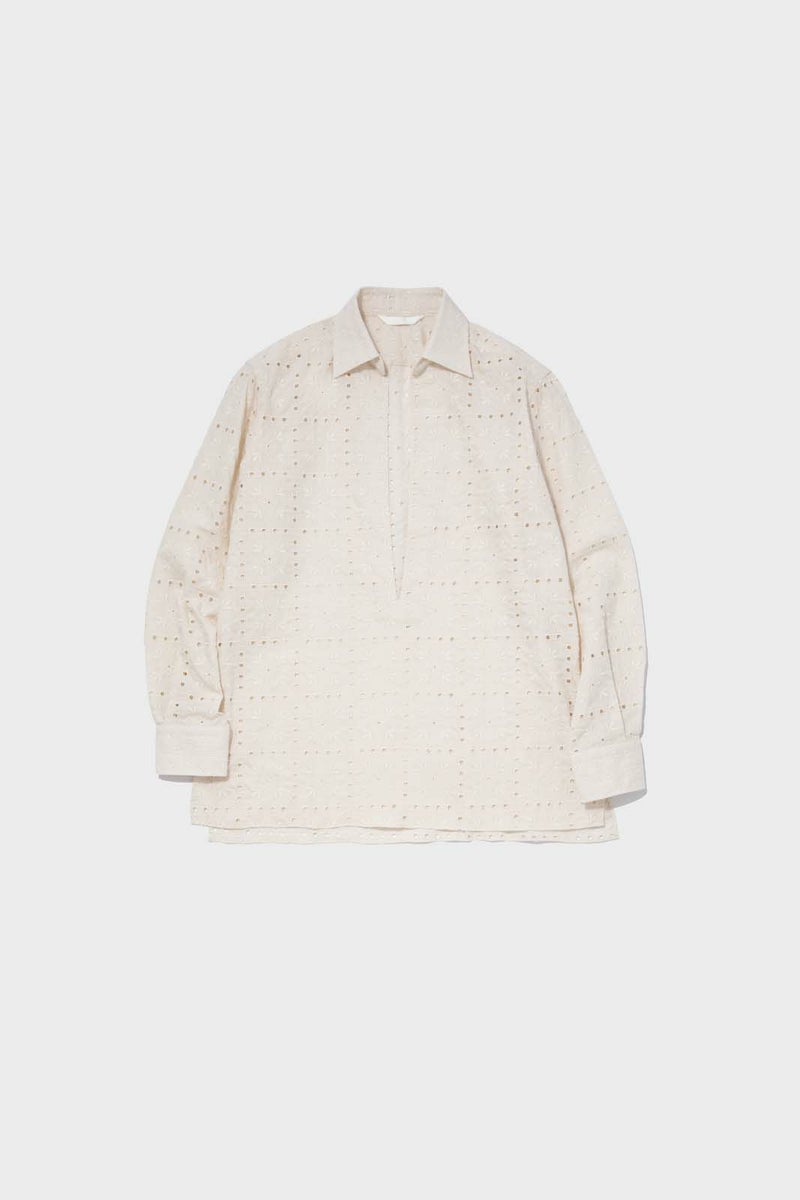 OUVERT - FLOWER MOTIF EMBROIDERY COTTON PULLOVER SHIRTS