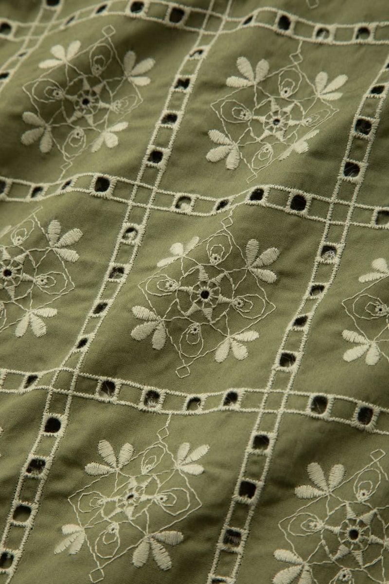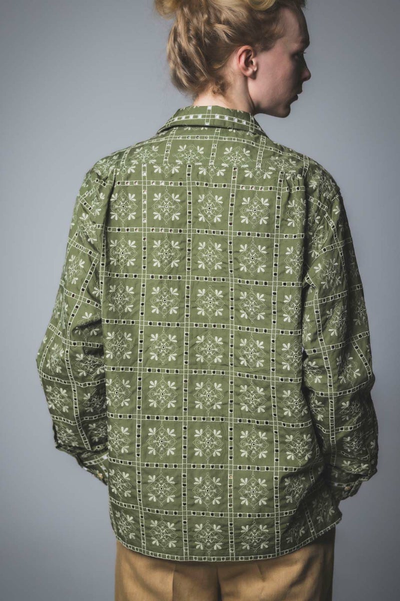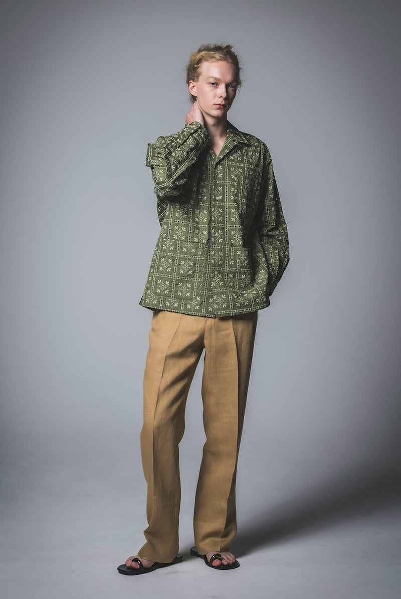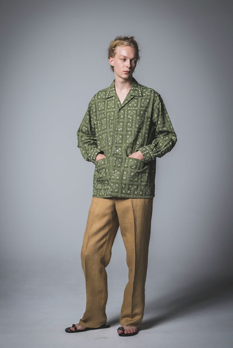 SEJOUR - FLOWER MOTIF EMBROIDERY KHAKI OPEN COLLER SHIRTS