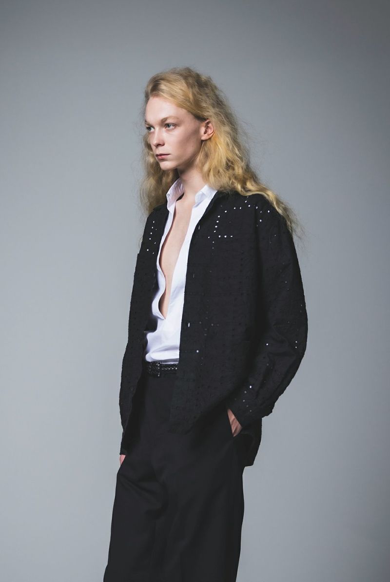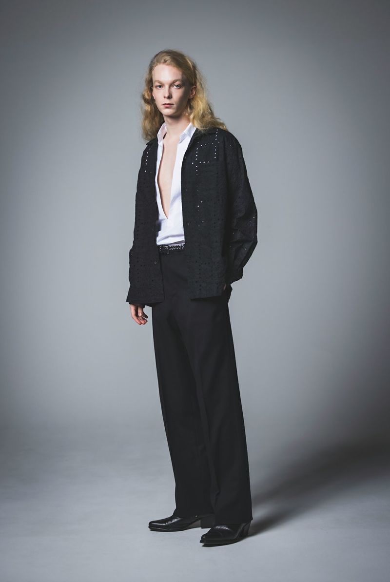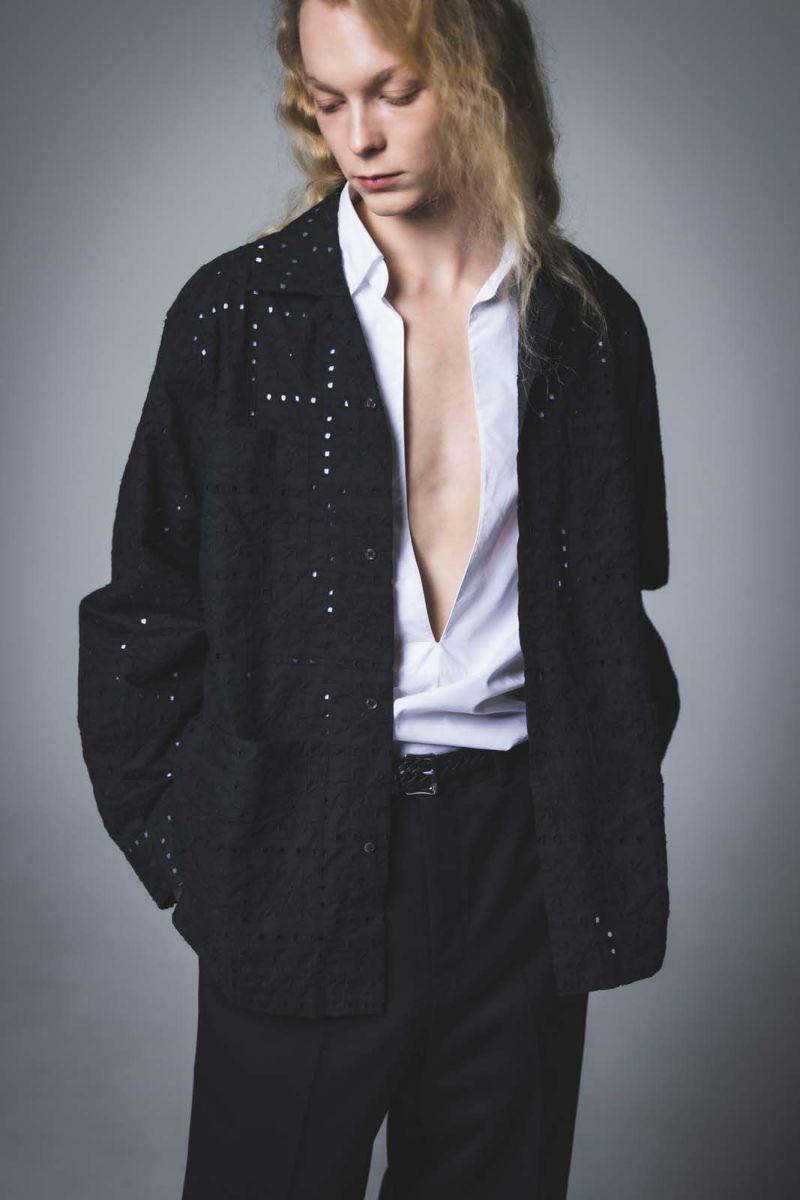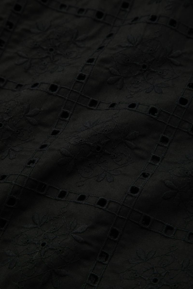 SEJOUR - FLOWER MOTIF EMBROIDERY BLACK OPEN COLLER SHIRTS