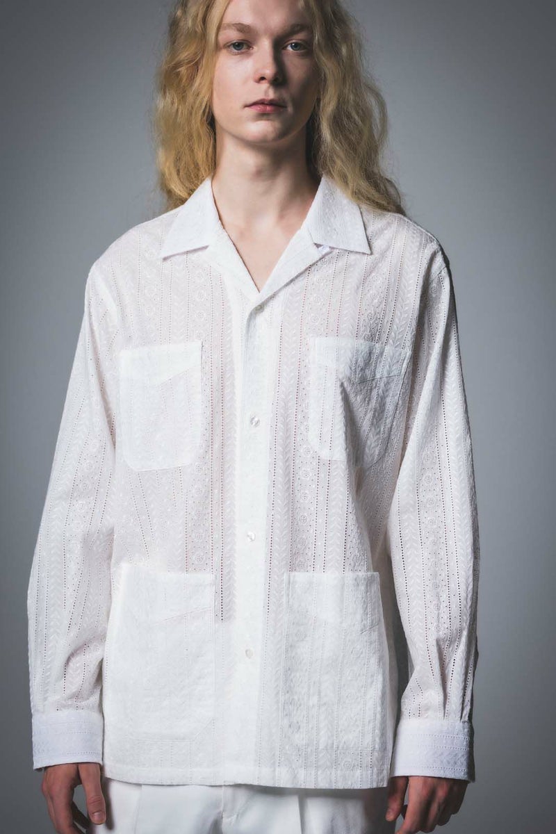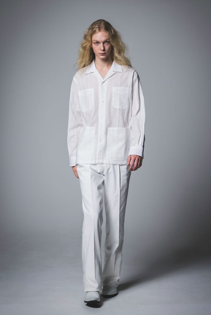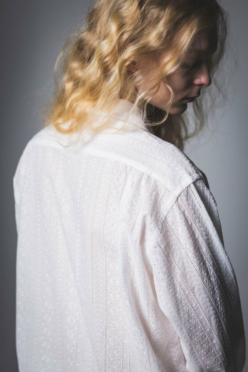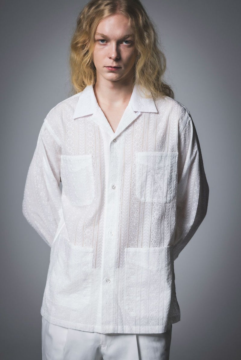 SEJOUR - FLOWER MOTIF LACE WHITE OPEN COLLER SHIRTS