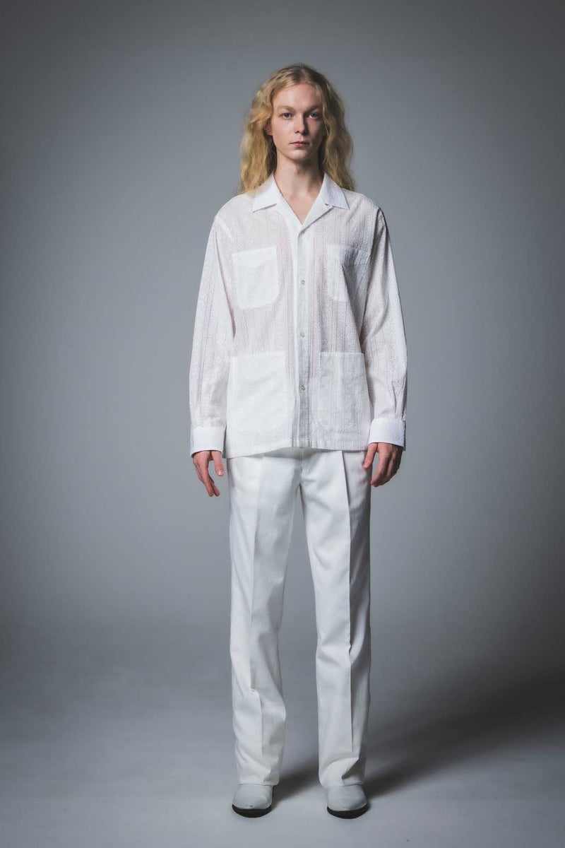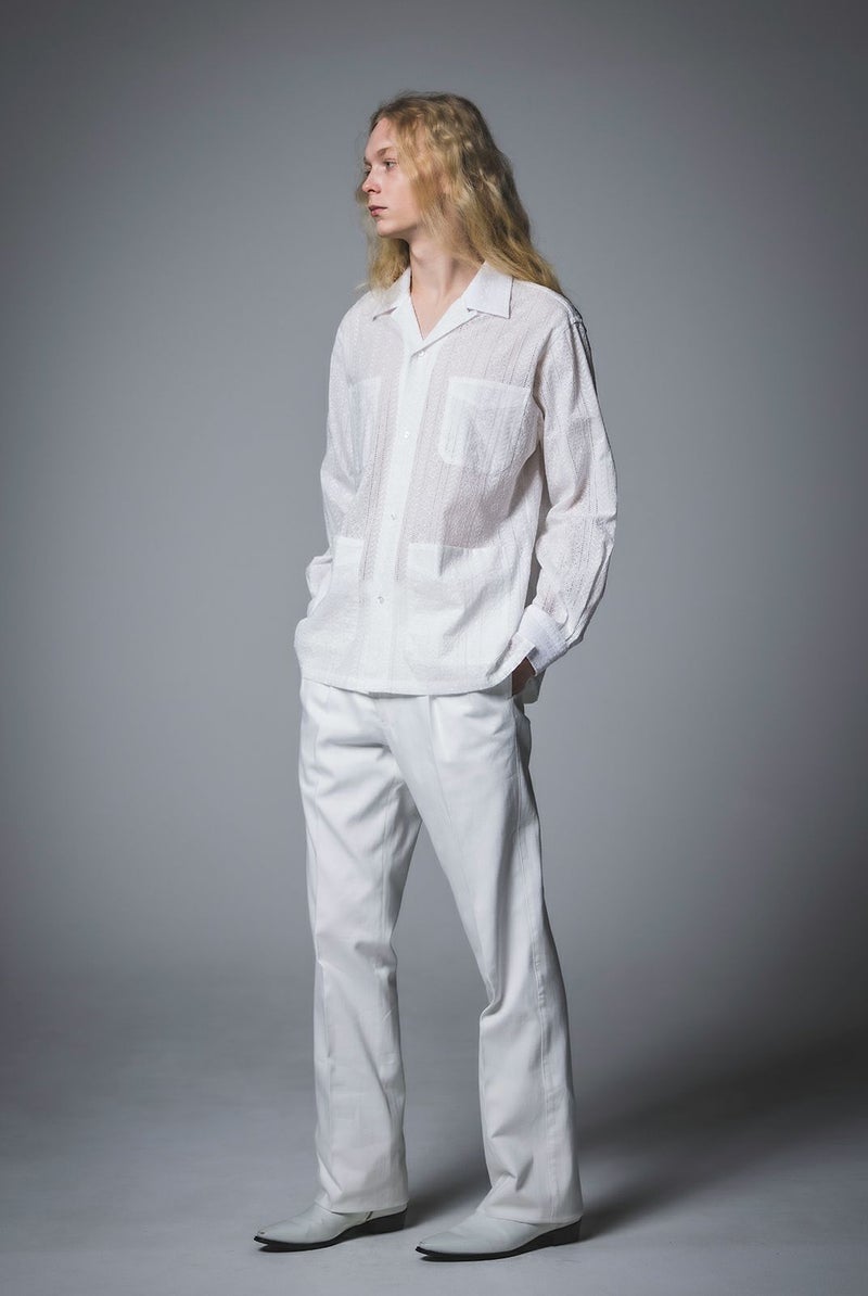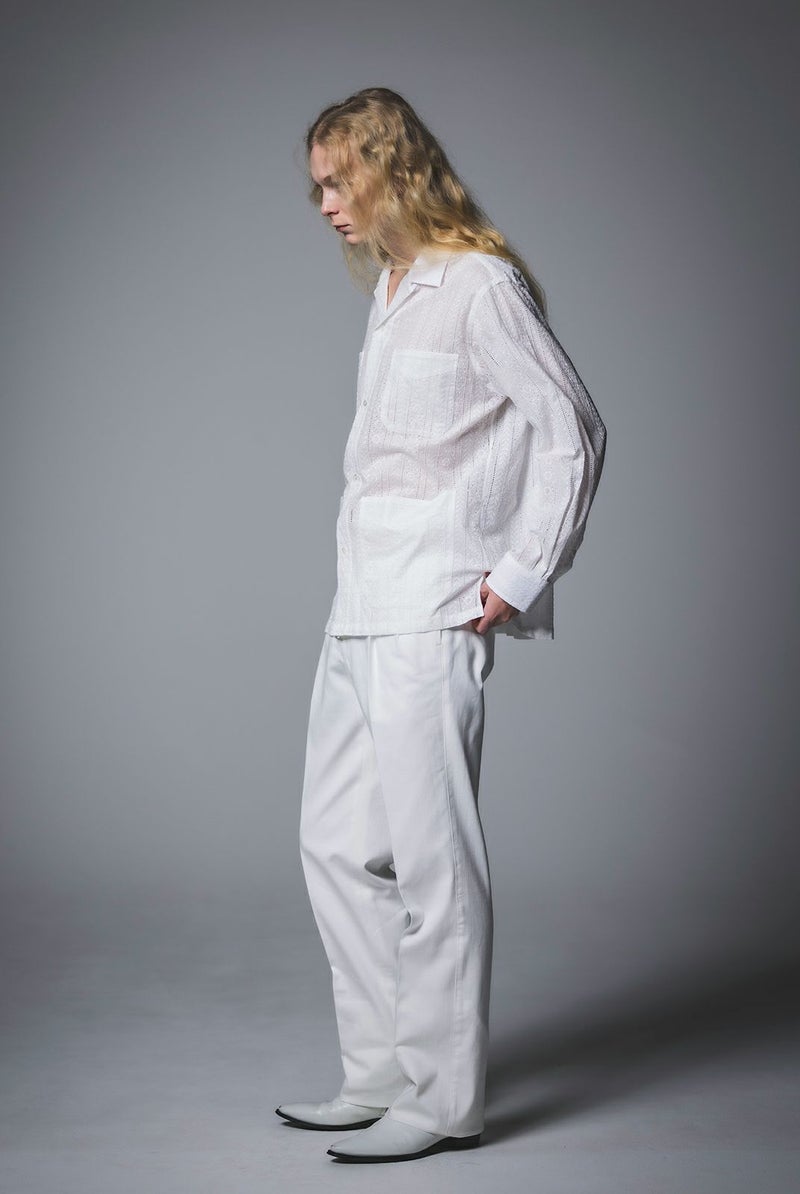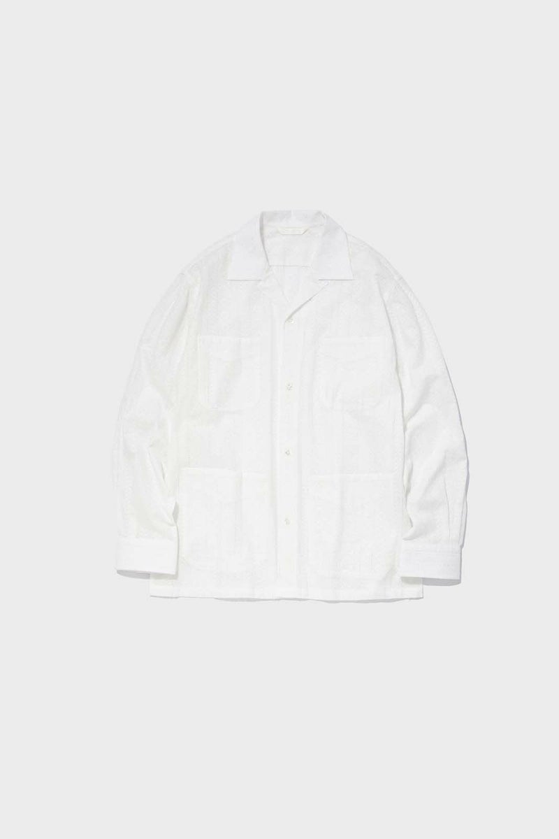 SEJOUR - FLOWER MOTIF LACE WHITE OPEN COLLER SHIRTS