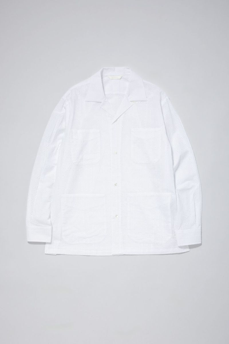 SEJOUR - EYELETS FLOWER MOTIF WHITE OPEN COLLER SHIRTS