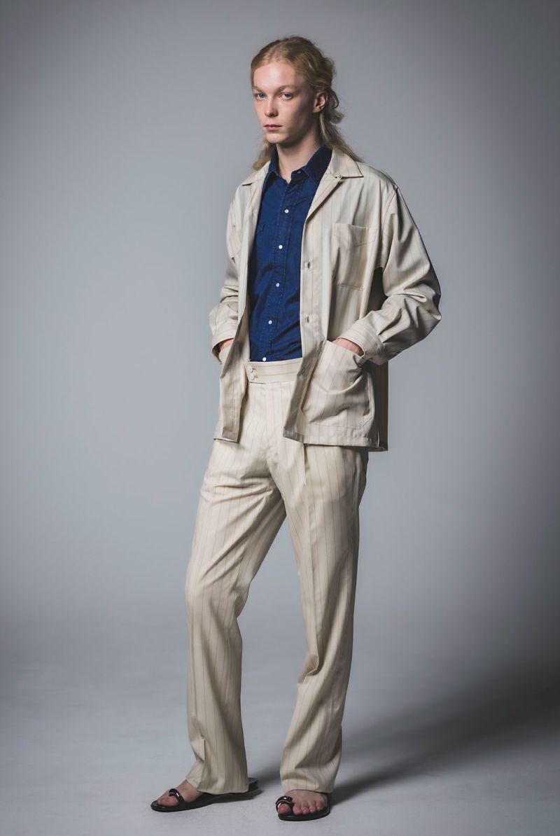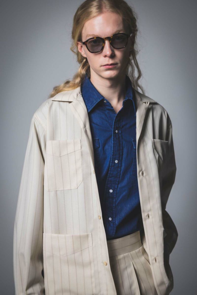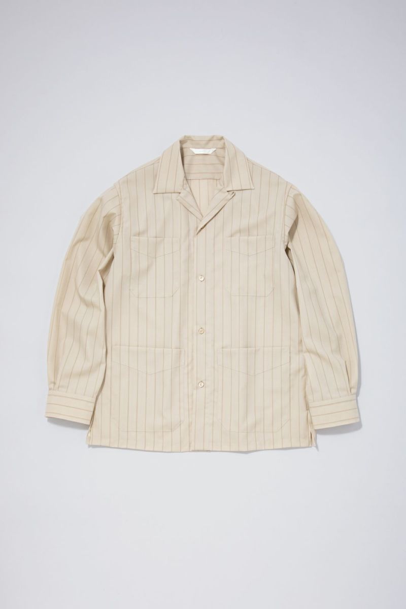 SEJOUR - BEIGE STRIPE WOOL OPEN COLLER SHIRTS