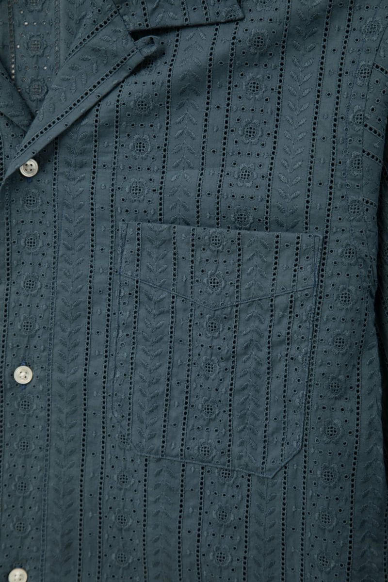 SEJOUR - FLOWER MOTIF LACE BLUE OPEN COLLER SHIRTS