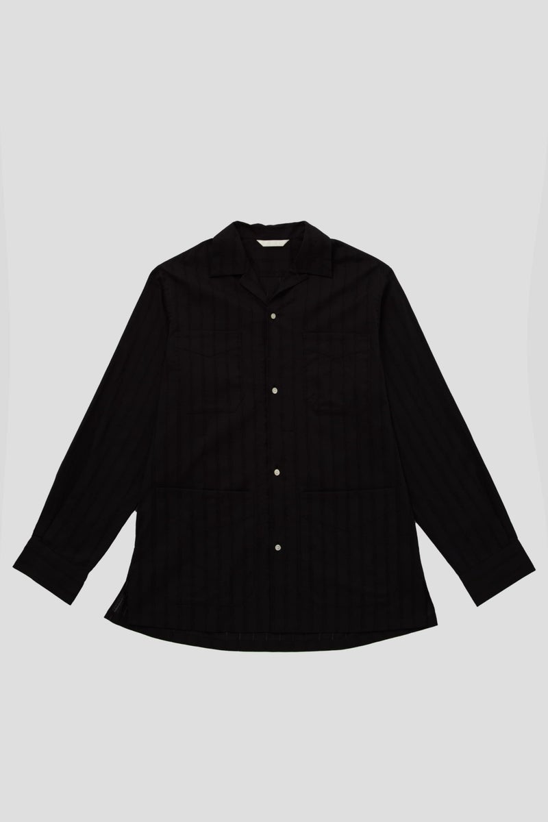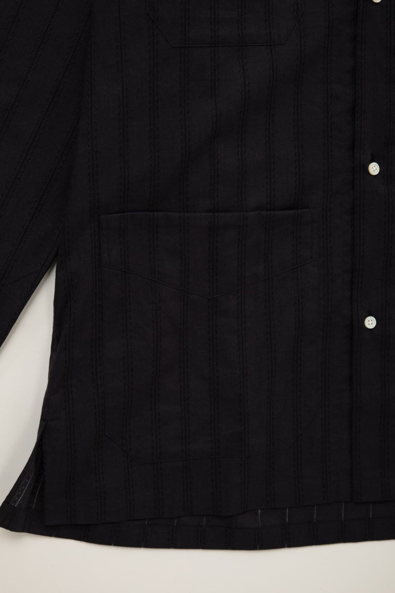 SEJOUR - EMBROIDERY LAWN BLACK OPEN COLLER SHIRTS