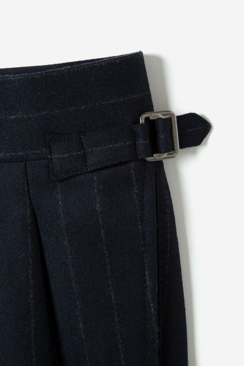 LEGAT - WOOL FLANNEL NAVY STRIPE DOUBLE-BREASTED SUITS